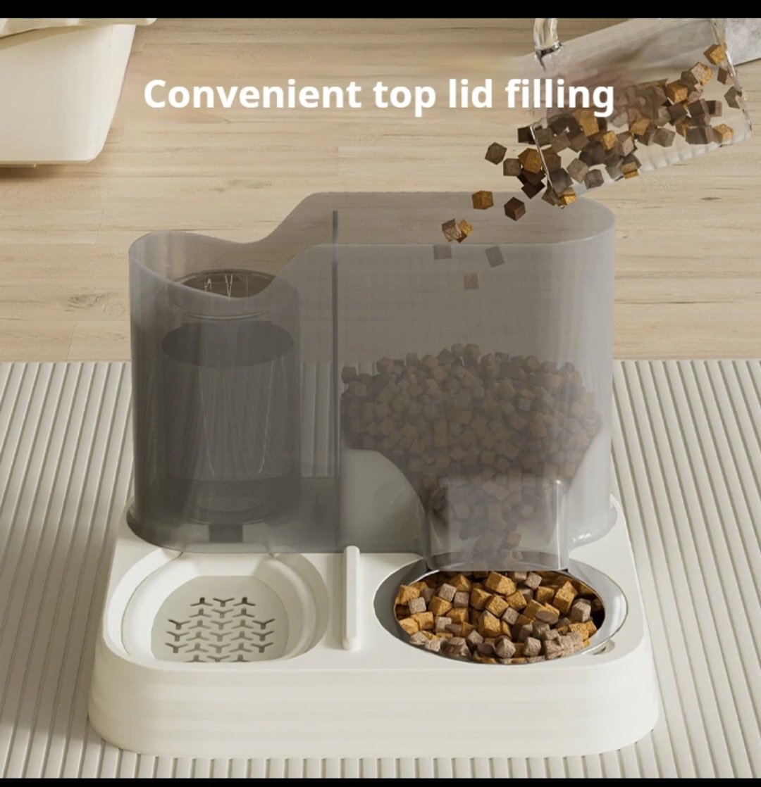 1. Automatic water and food refill, extra-large capacity 1.5L water dispenser + 2L feeder