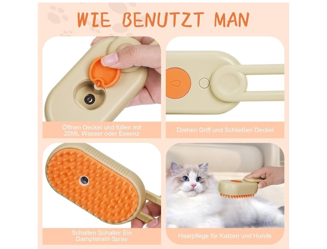 Title: Electric Spray Pet Comb for Cats, One-Button Spray Cleaning, Hair Removal, and Dogs, Steam Comb, Anti-Fluff Comb.