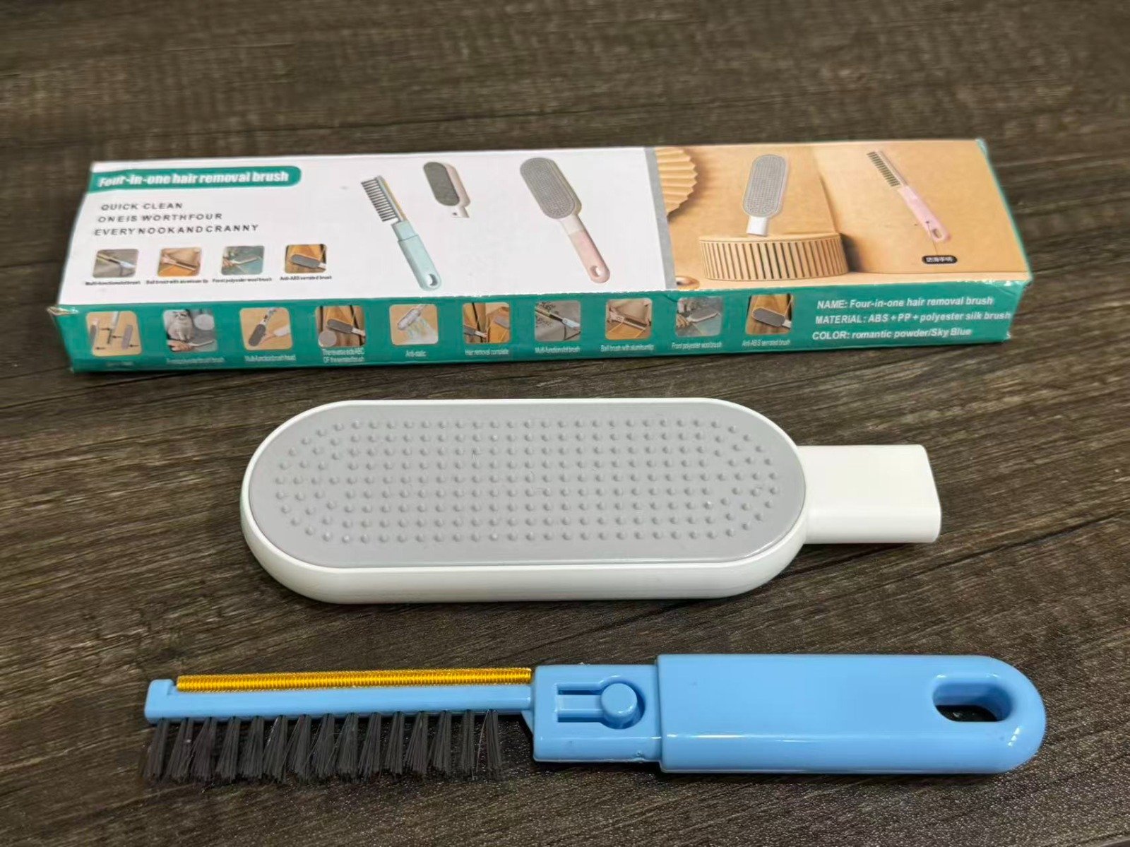 Title: 4-in-1 Electrostatic Lint Remover Brush, Multifunctional Clothing Liner, Pet Hair Brush, Sofa Dusting and Lint Scraper Product Introduction: